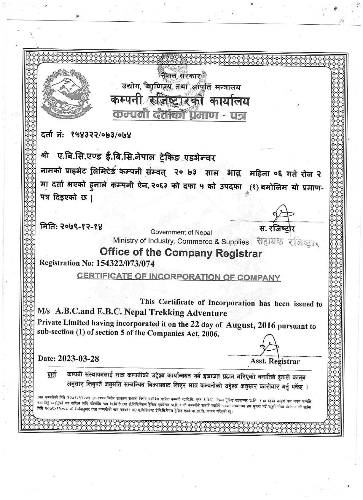 Certificate of Incorporation of Company